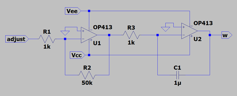 Let Vadjust be the adjust signal, and Vex and Vac are the expected output and the actual output. Then the relation between them can be obtained as: