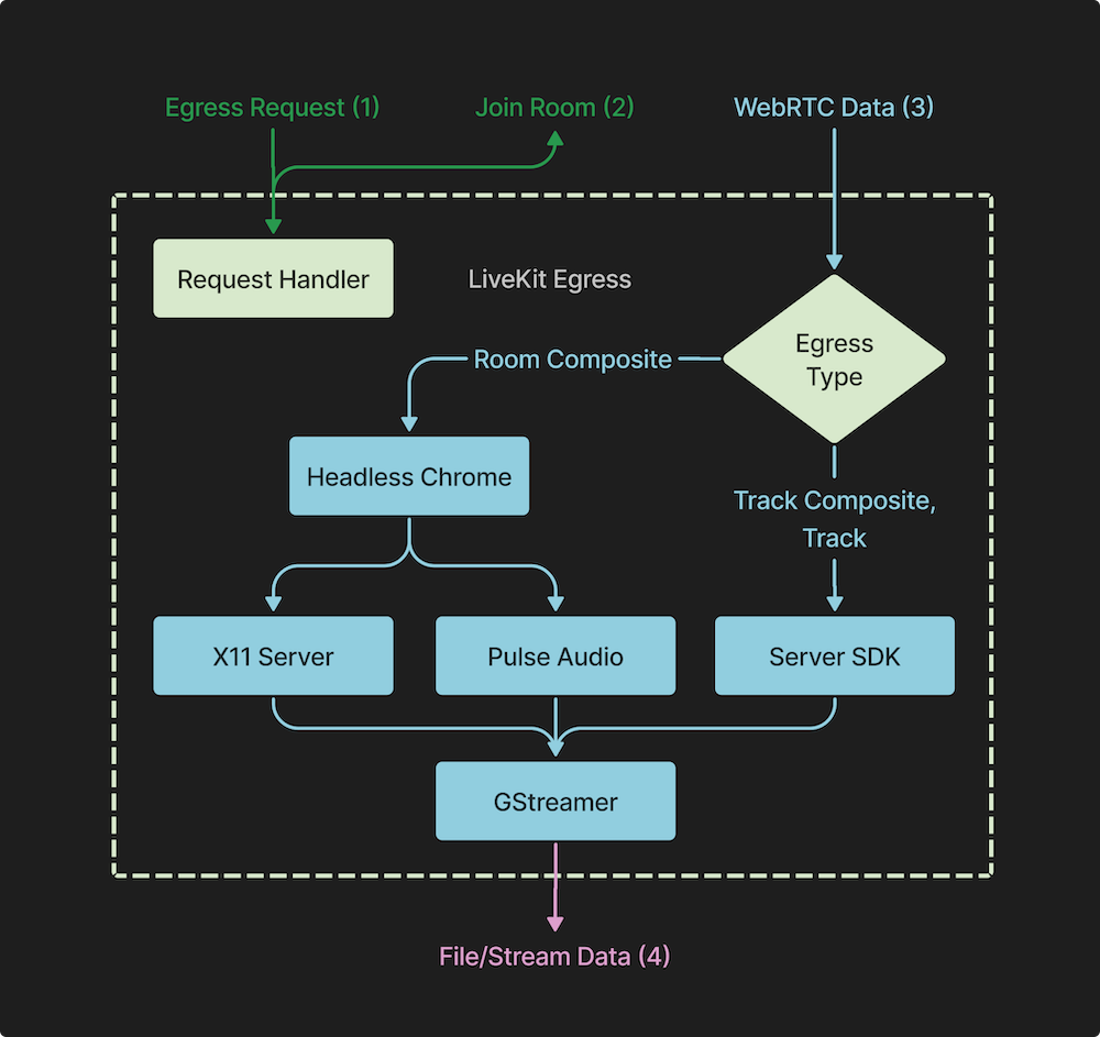 LiveKit offers an additional system, Universal Egress, designed to provide universal exports of LiveKit sessions or tracks to a file or stream data.