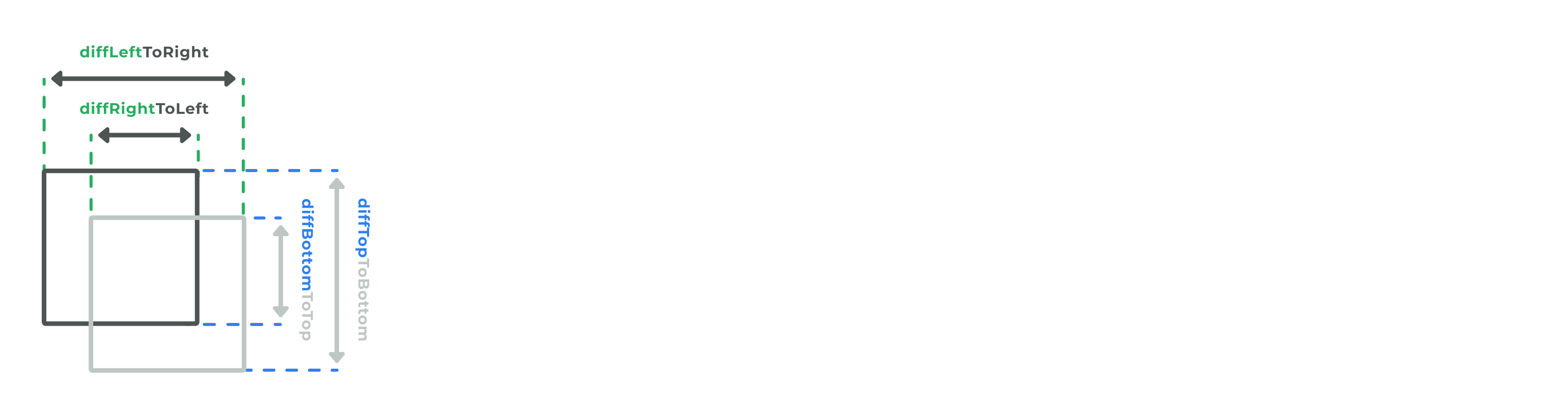 An additional set of special getters can help you calculate the difference between two adjacent sides of two different widgets (e.g. right to left, top to bottom, etc.).