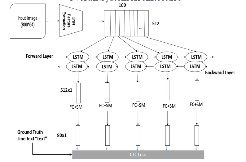 • Then CTC LOSS Alex Graves is used to train the RNN which eliminate the Alignment problem in Handwritten, since handwritten have different alignment of every writers. We just gave the what is written in the image (Ground Truth Text) and BLSTM output, then it calculates loss simply as -log("gtText"); aim to minimize negative maximum likelihood path.