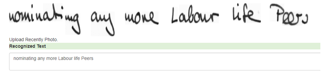 Use Convolutional Recurrent Neural Network to recognize the Handwritten line text image without pre segmentation into words or characters. Use CTC loss Function to train. More read this Medium Post
