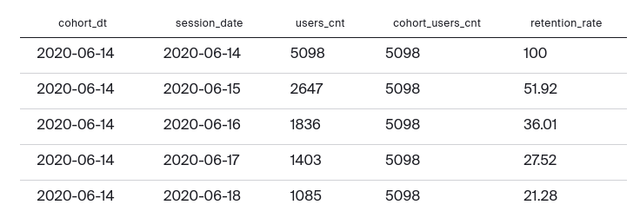 JOIN cohort_users_cnt cuc ON p.dt = cuc.dt;