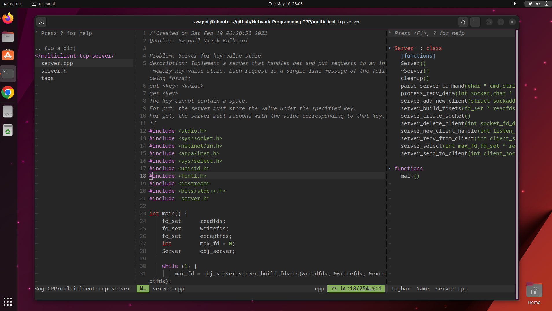 Youcompleteme: use autocomplete directly NerdTree: For browsing directory structure: Use F5 for nerd tree to appear/disappear tagbar: For browsing variables/functions within current file: Use F6 to tagbar to appear disappear Ctrl+P: Use this for file search