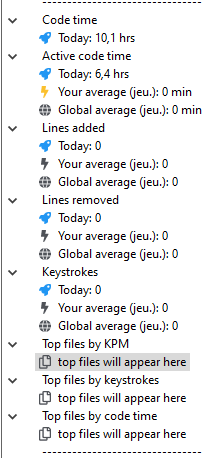 Aside from 'code time' and 'active code time', every other statistics are displaying a 0.