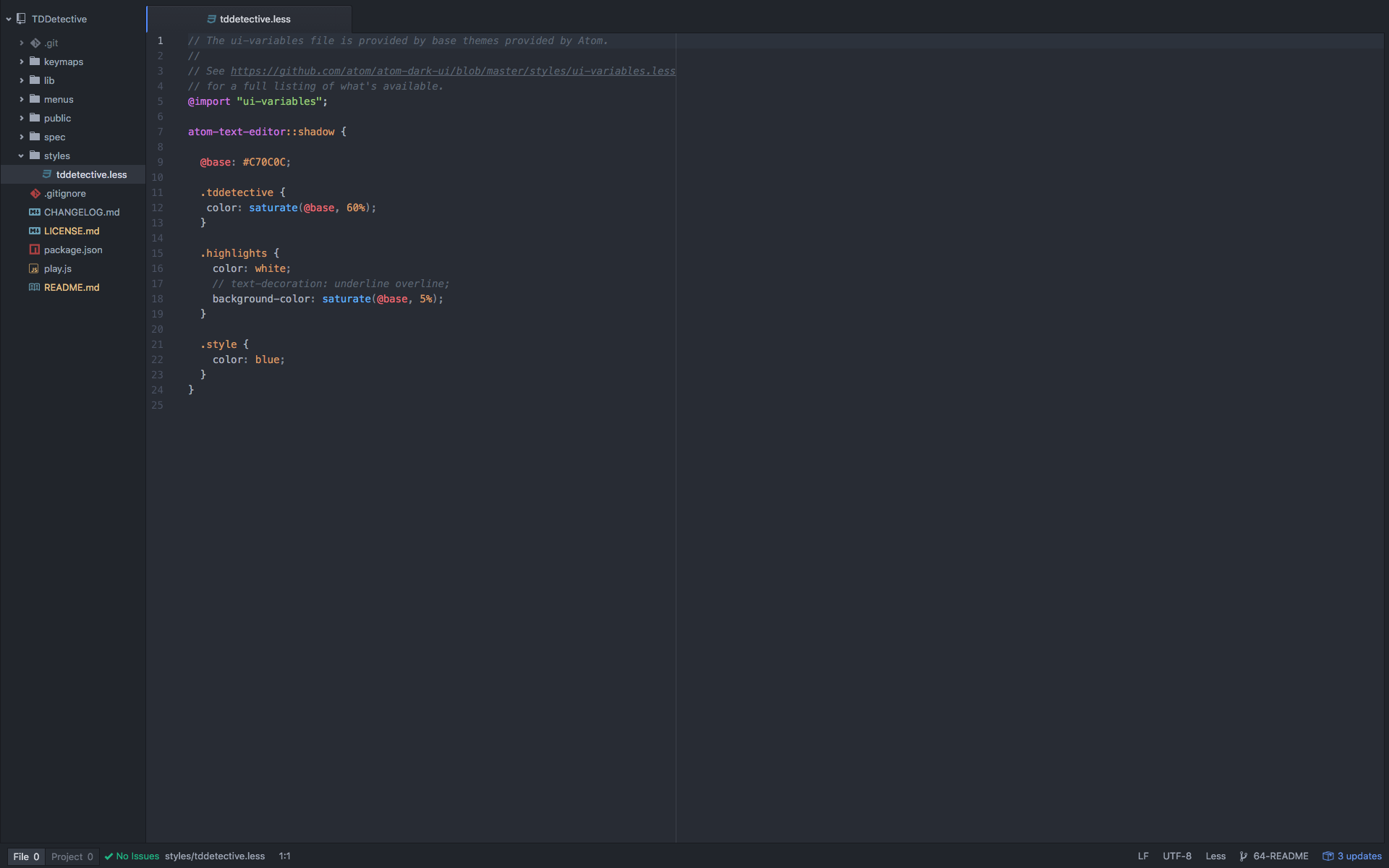 If you wish to customise any of the visual features, you can edit the tddetective.less file, which is located in the styles directory.