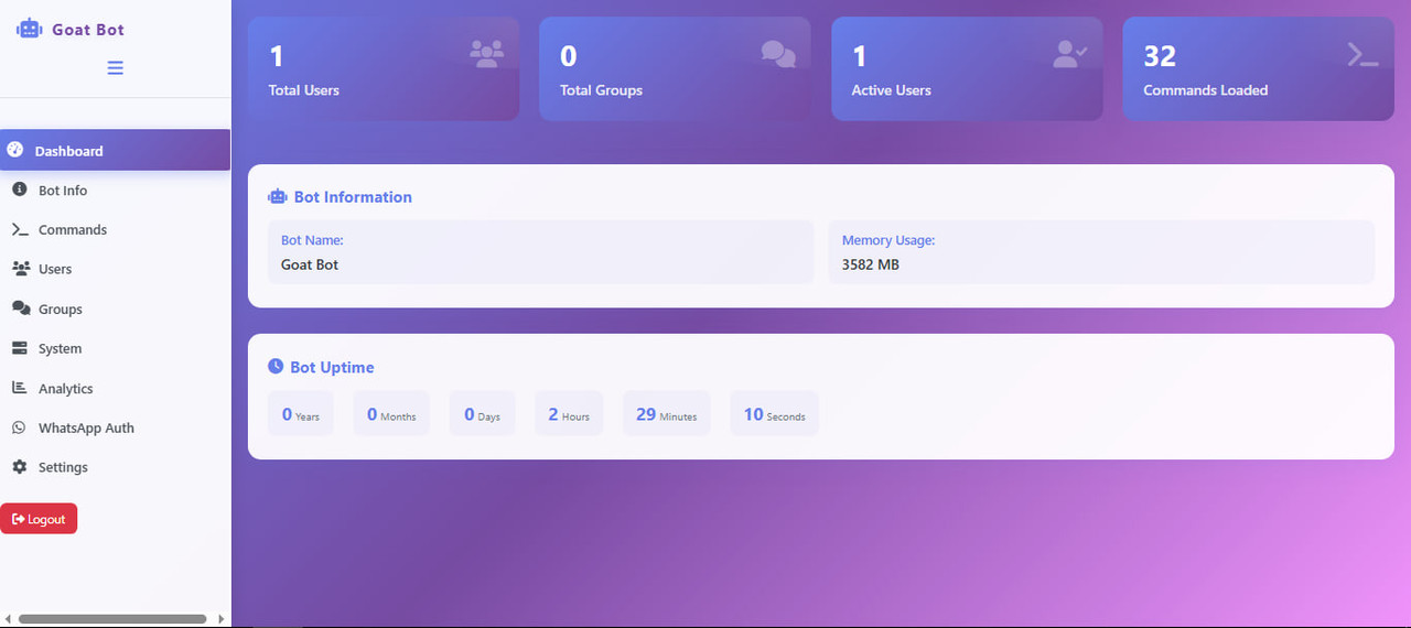 Goat WhatsApp Bot was built with a single goal: to offer a lightweight, stable, and developer-friendly chatbot platform for WhatsApp. Itβs crafted from the ground up with clarity, modularity, and maintainability in mind β making it easier for developers to understand, extend, and collaborate on.