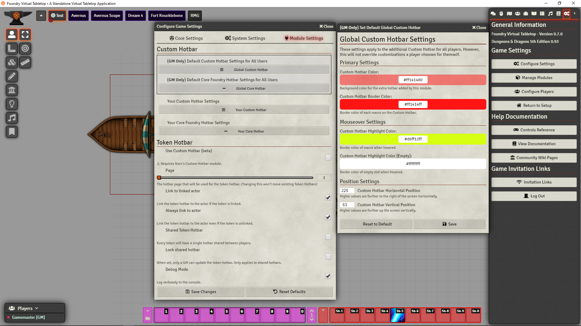 Additionally, players (or GMs I guess!) can disable either hotbar entirely if they don't want it for themselves.