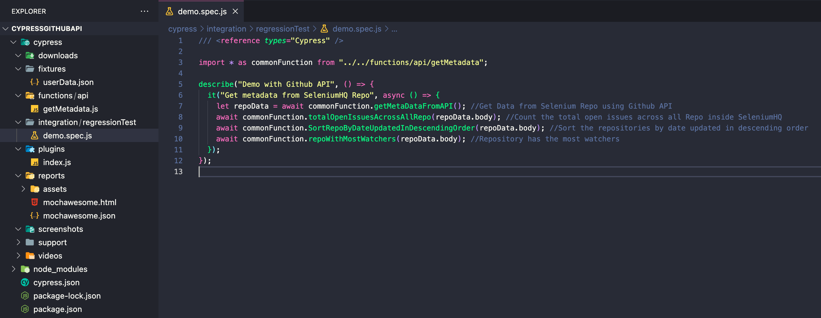 Testing Github API using Cypress Framework