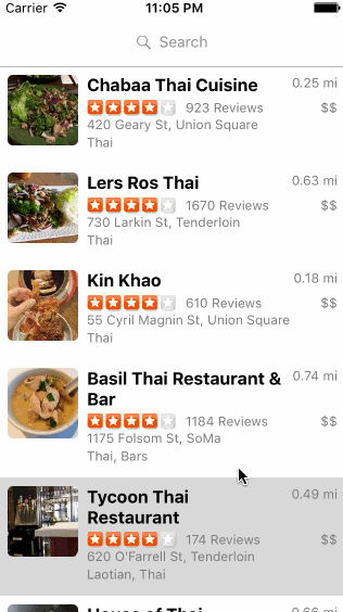 - Search bar should be in the navigation bar (doesn't have to expand to show location like the real Yelp app does).
