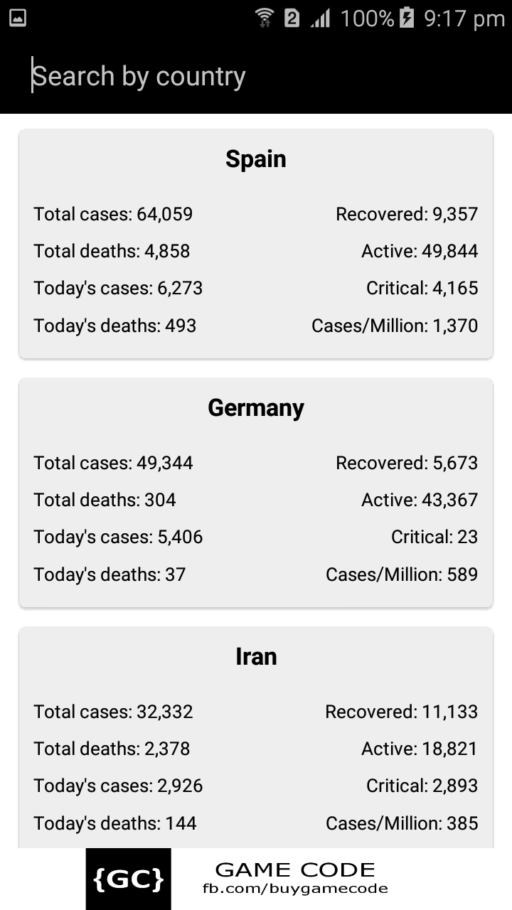 Android app on novel corona virus report