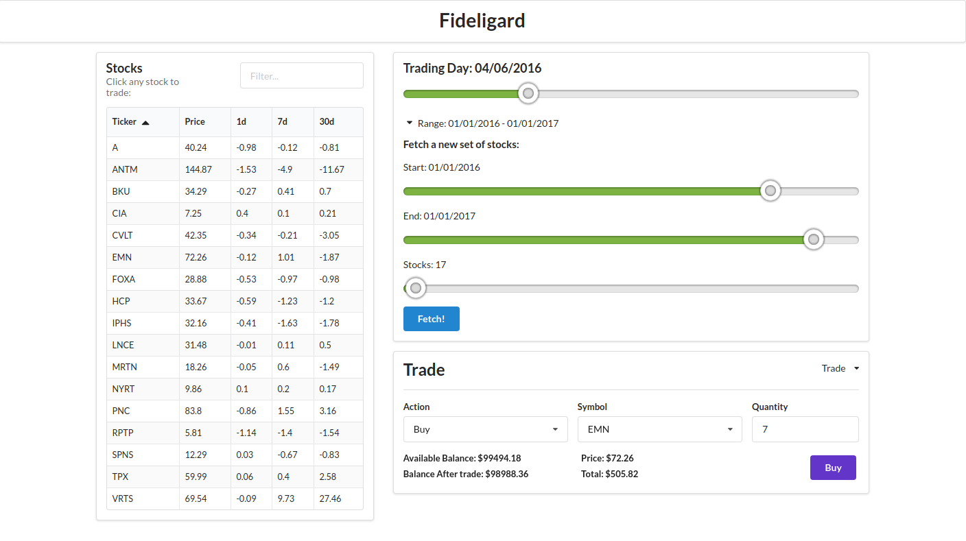 Fideligard is a full-stack JavaScript app featuring a React front-end and an Express back-end
