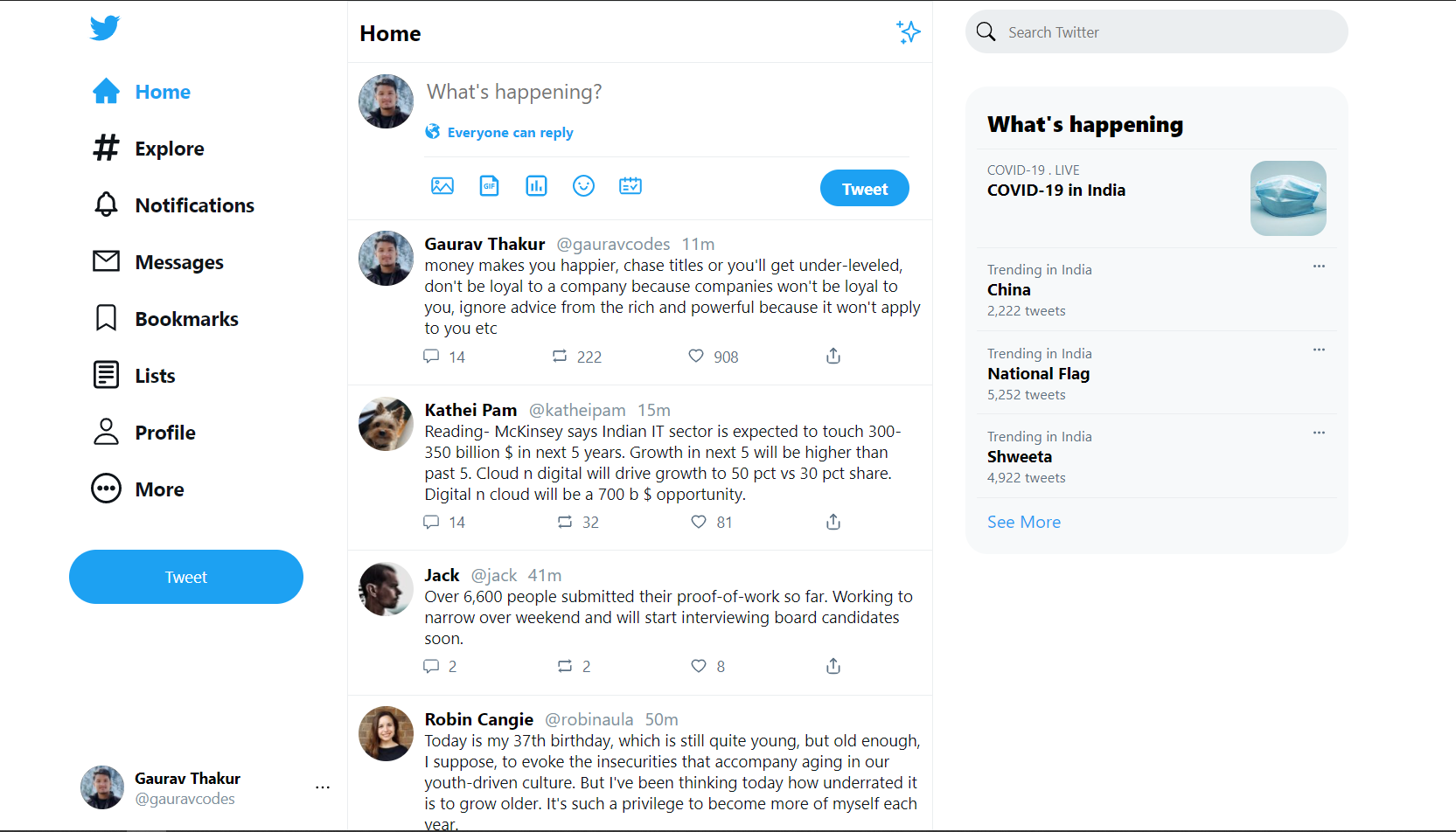 It is a clone of Twitter homepage created with ReactJS. The app is fully responsive and no external dependency/library is used. Styling is done with pure CSS. It only took me less than 24 hours to complete the project.