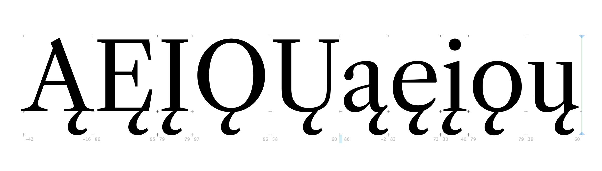 ## Ogoneks Many of these are in or near the center of letters. They should be coming down from the bottom-right corner.