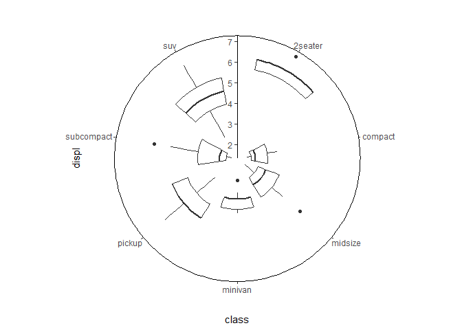 ggplot(mpg, aes(class, displ)) +