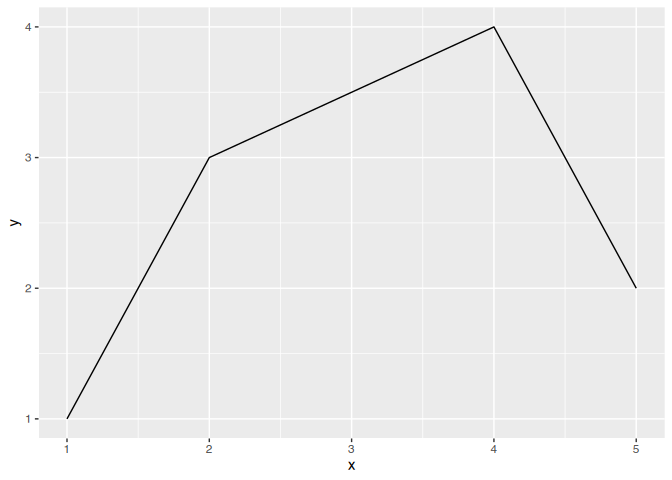 ggplot(aes(x, y)) + stat_summary(fun="mean", geom="line")