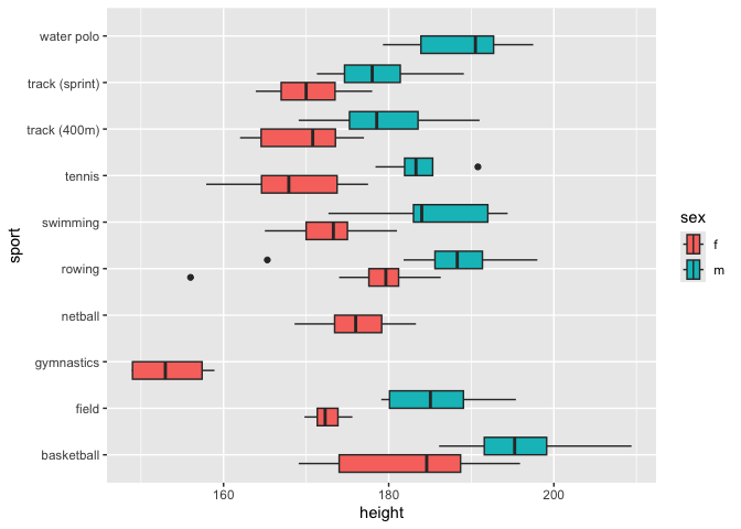 geom_boxplot(position = position_dodge(preserve = "single")) # boxes for water polo, netball, and gymnastics are in the wrong location