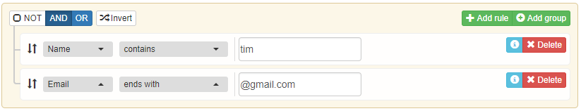 SELECT * FROM table_of_data_to_integrate WHERE `name` LIKE '%tim%' AND `email` LIKE '%@gmail.com' use timgws\QueryBuilderParser;