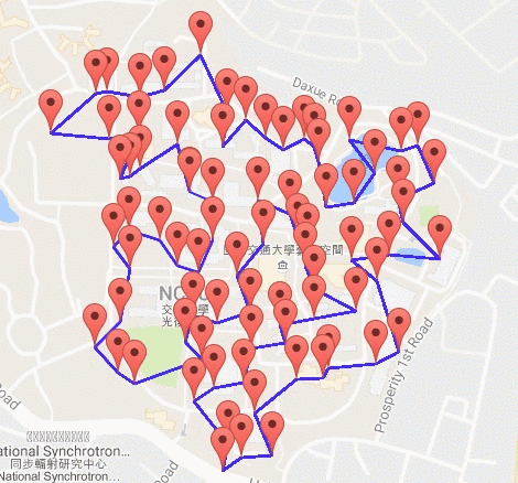 直接執行python tsp.py, 預設會讀取data/nctu.csv