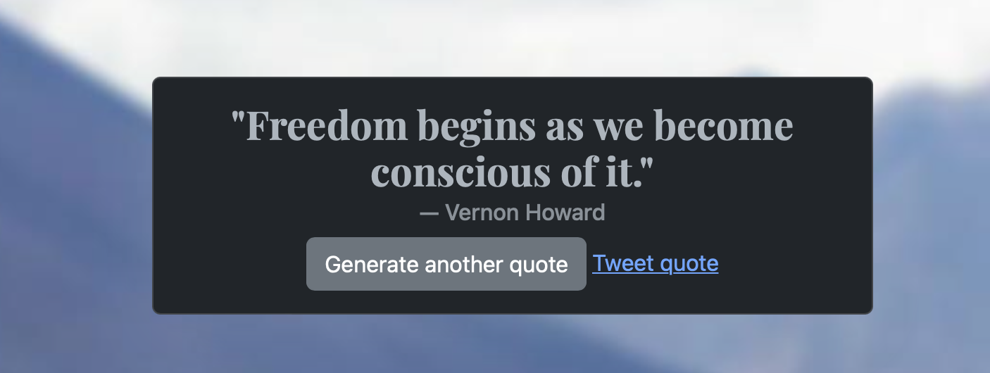 Quotable is a full-stack web app, including a developer API, that provides random motivational quotes to the user. It uses Node, Express, jQuery, and Bootstrap.