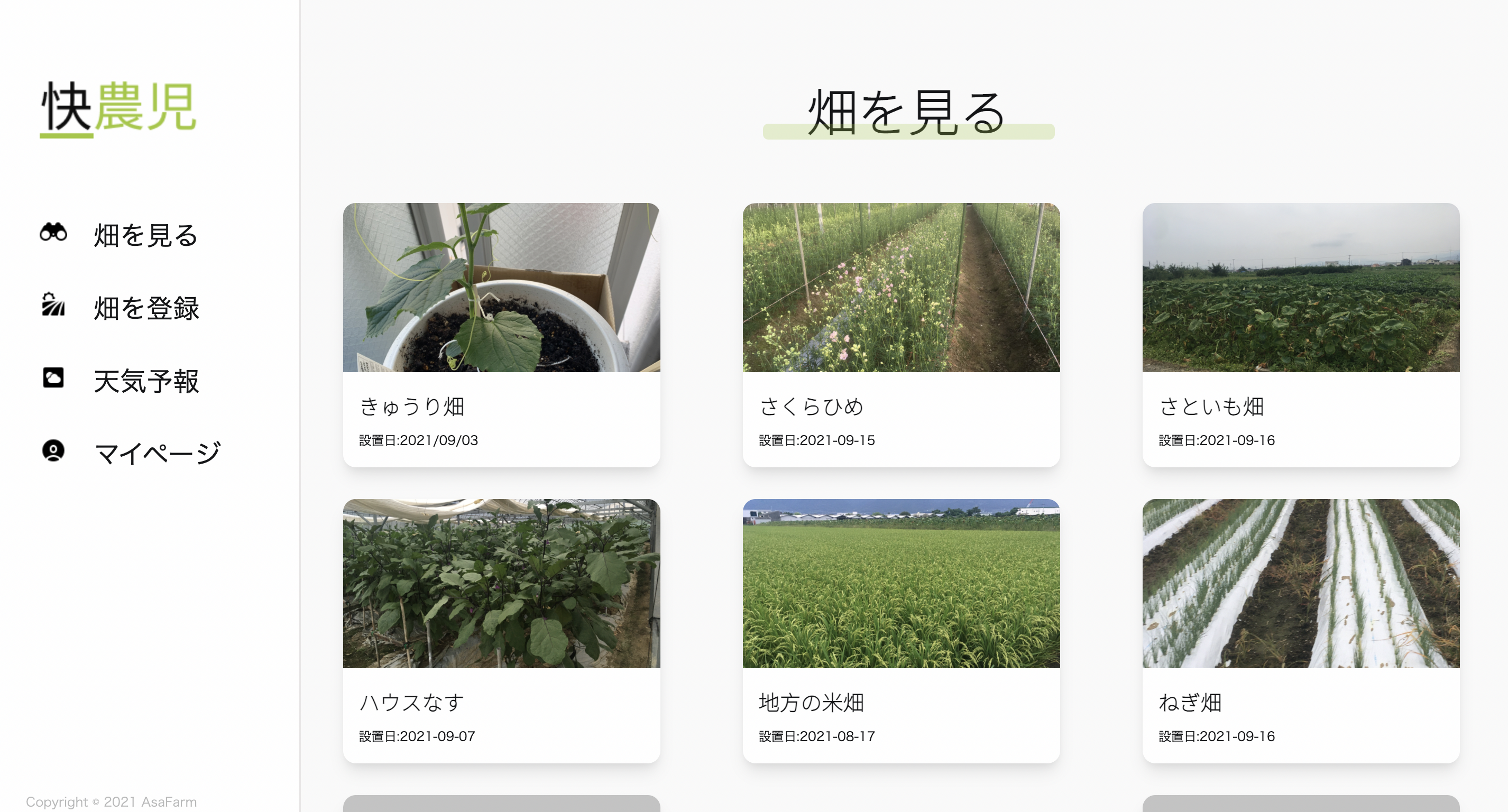 私の両親は兼業農家です。毎日自宅から7キロ先の畑に水やりを朝と夕方、雨が降った翌日は畑の状態を確認しに行っています。 自宅から水やりを行ったり、現在の畑の状態を可視化することで畑に行く回数が減り体の負担を軽減できると考え、制作しました。また、快農児を通して同世代が農業に興味を持つきっかけになってほしいと思っています。