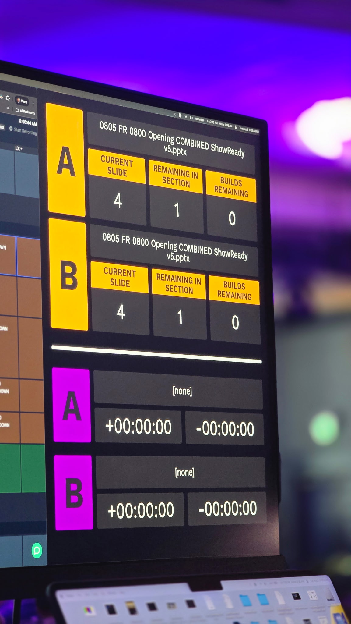| The original inspiration, displaying variables for a live event environment with PowerPoint, video playback, and switching. |