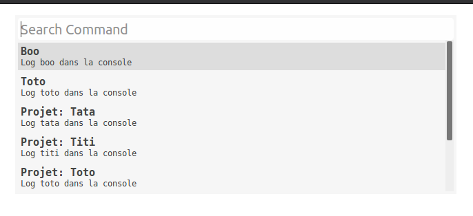 <script type="application/javascript" src="https://raw.githubusercontent.com/tpoisseau/command-palette.js/master/dist/command-palette.min.js"></script>And for styling in head tab