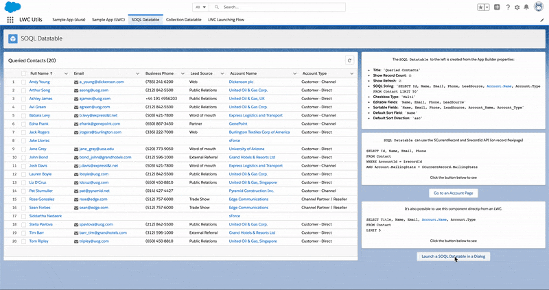 Dynamically create a soqlDatatable when clicking the Launch a SOQL Datatable in a Dialog button from the recipes.