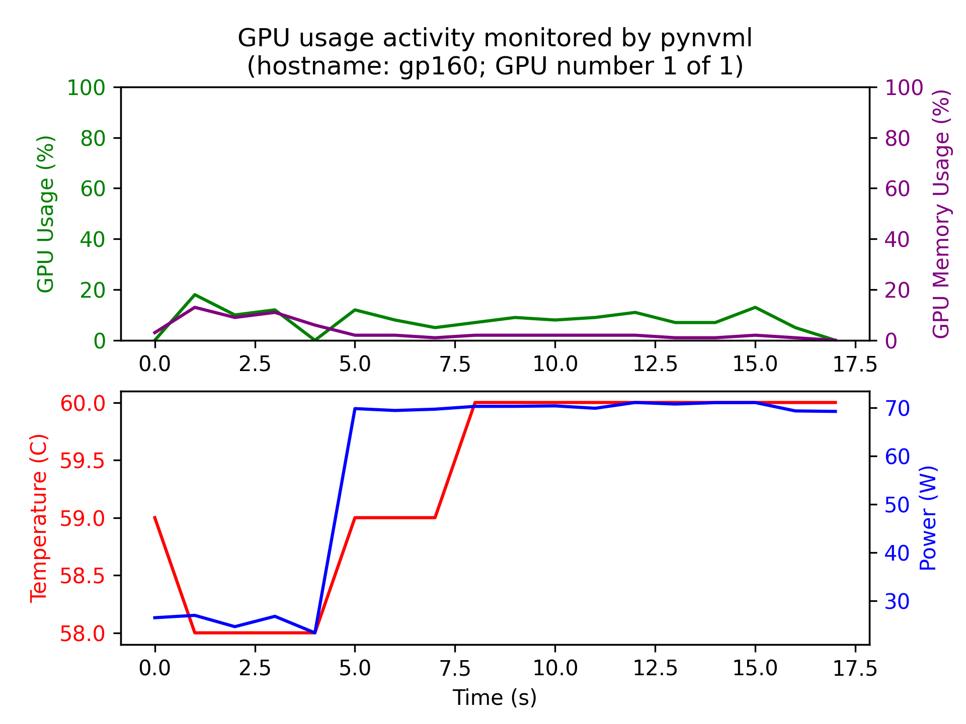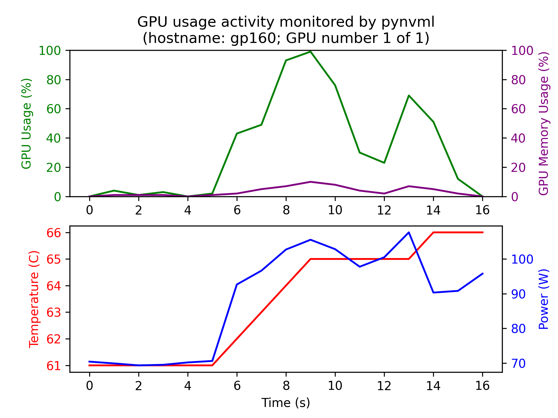 And respective pyNVML monitoring results for NumPy, CuPy: