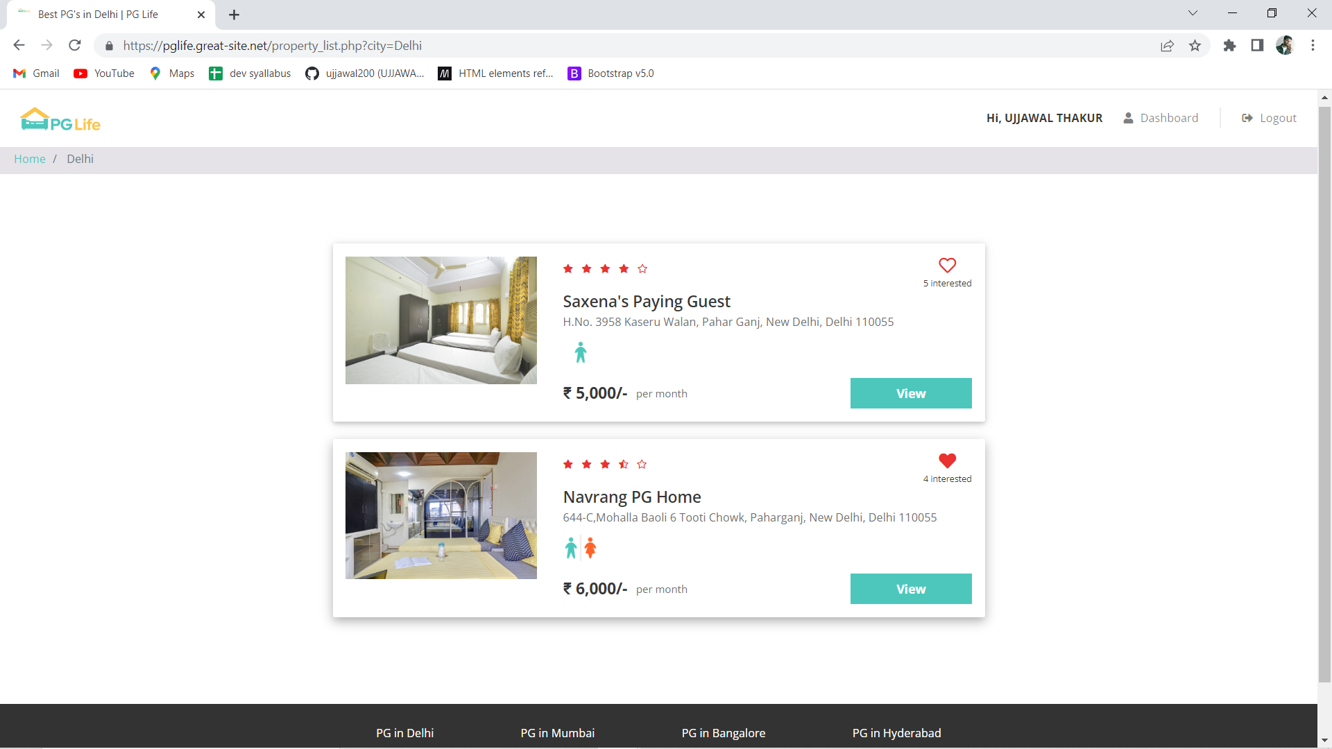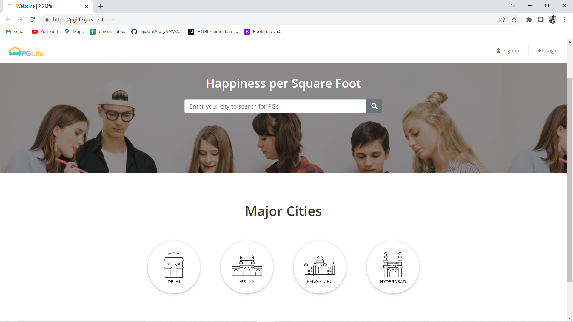 Pglife is a Student accommodation website where students can search for PGs in mention cities of India.