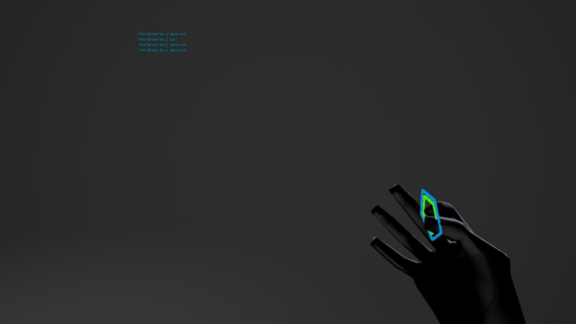 Middle pentagon turns green when detected, detection lost when pinch further than blue pentagon diameter