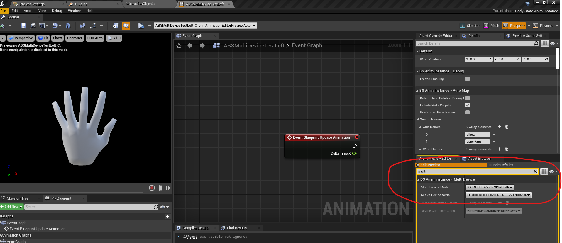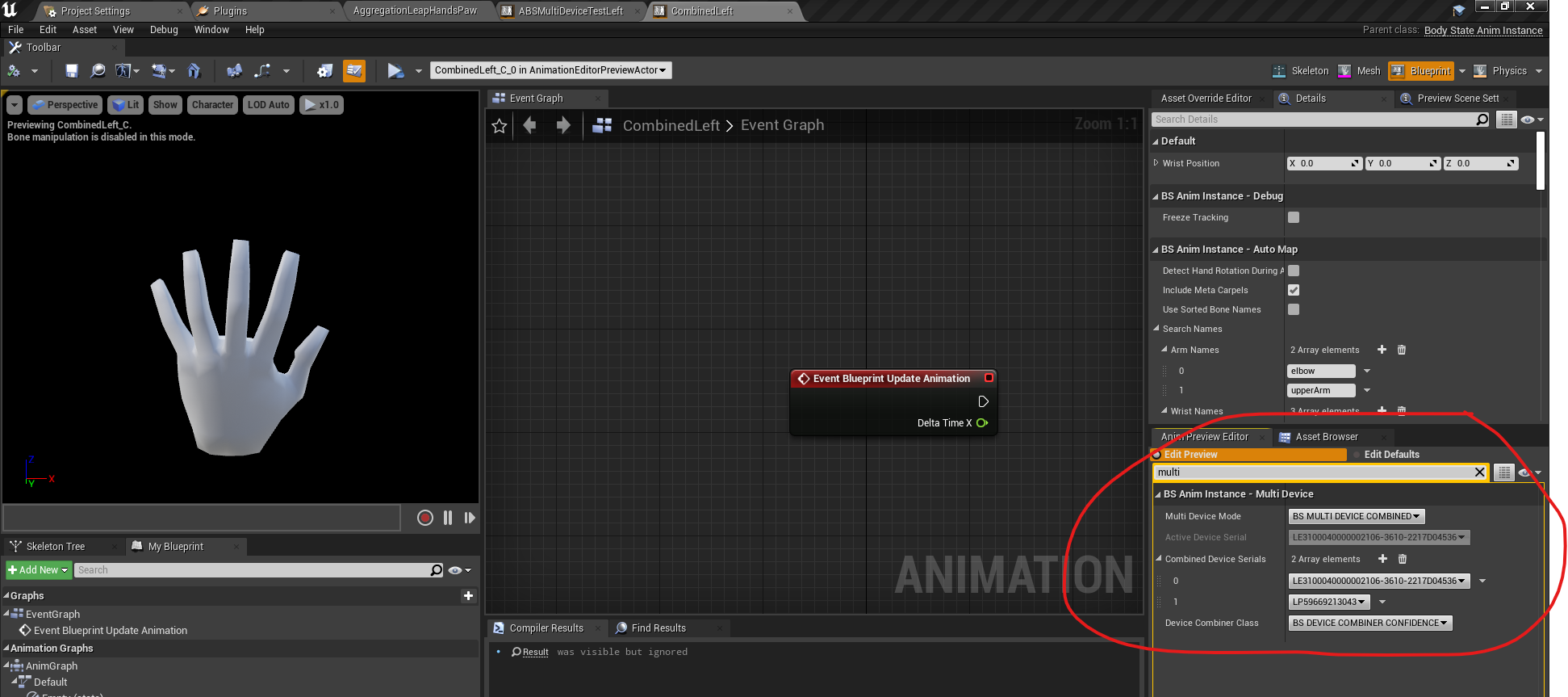 • Compile your new animation blueprint. At this point there will be missing variable errors