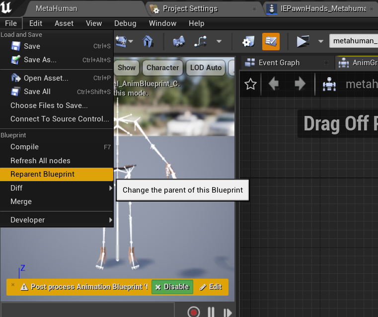 • Locate and create a new animation blueprint from your metahuman’s skeleton. image7 image8