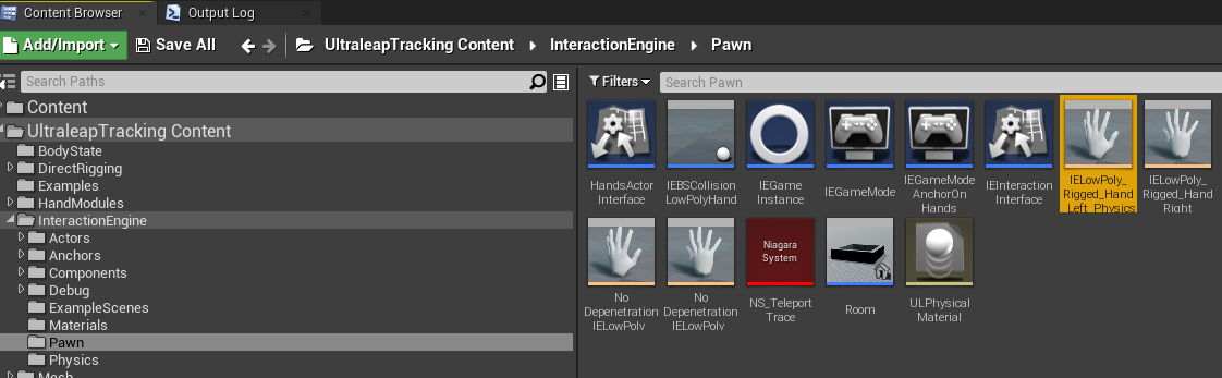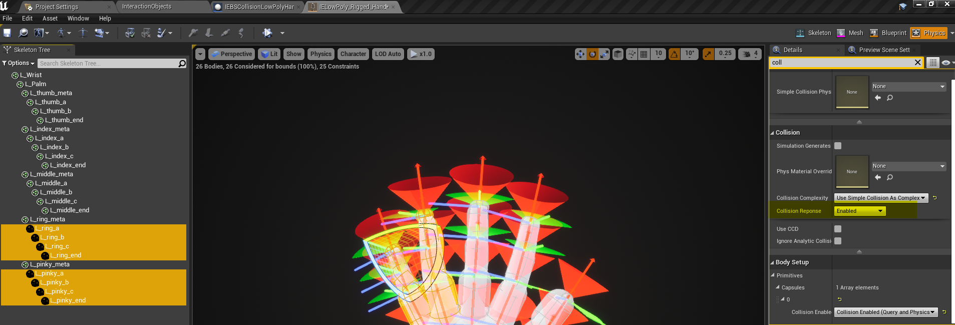 • Open the IELowPloy_Rigged_Hand_Left_Physics asset from InteractionEngine/Pawn/IELowPoly_Rigged_Hand_Left_Physics.uasset image17