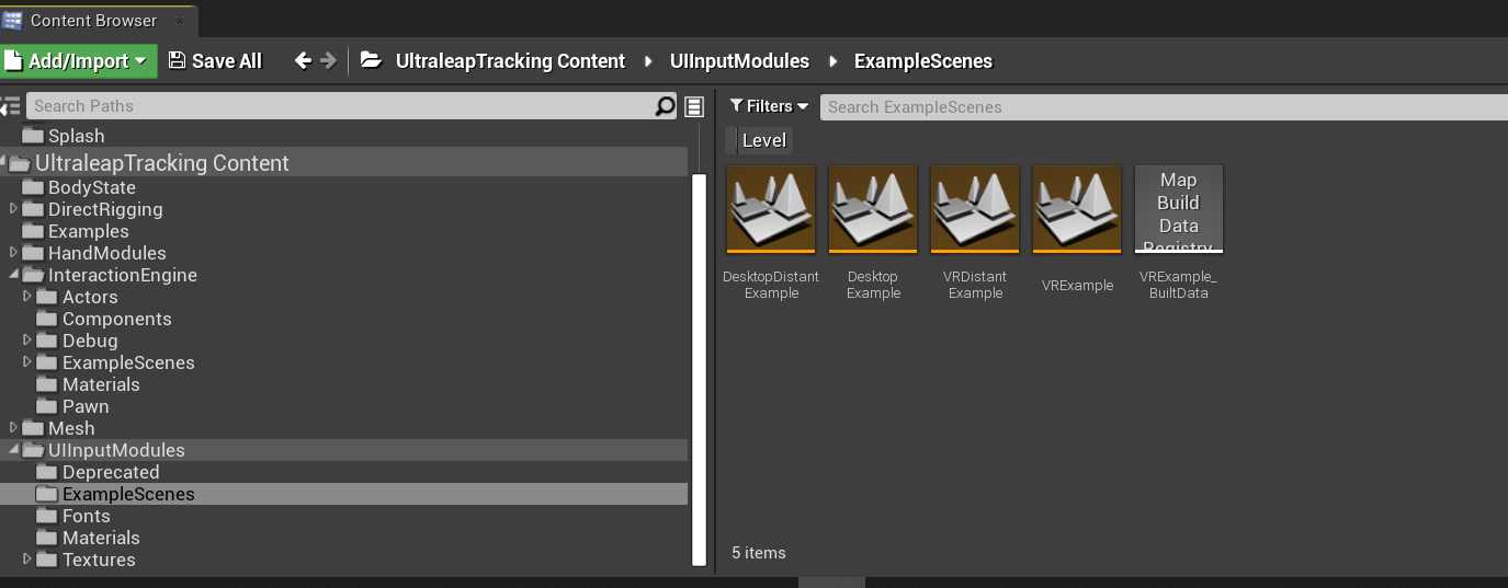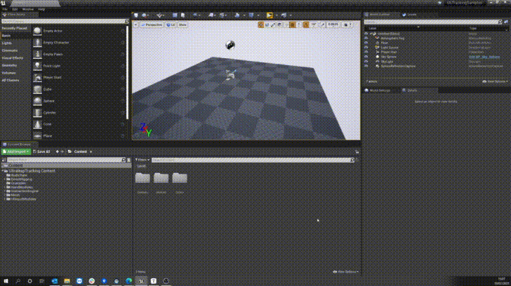 After the plugin is enabled, find Leap Desktop Actor in your content browser (plugin content enabled) and place it anywhere in your scene. When you hit play your hands will be tracked from the actor center with the sensor expected to be facing upwards.