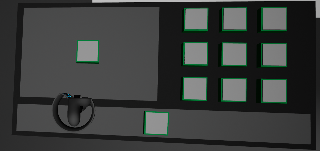 Middle sphere turns green when detected, detection lost when proximity further than blue sphere