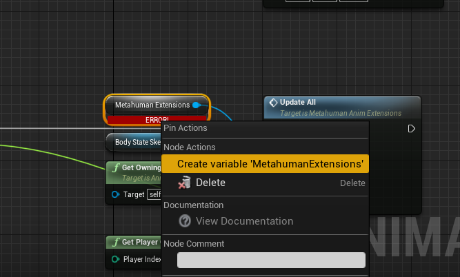 • Right click on the missing Metahuman Extensions variable and choose Create variable for Metahuman Extensions image13