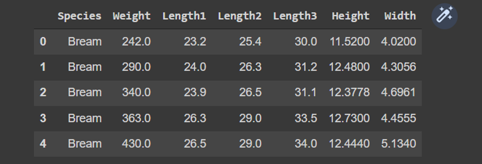 Dataset used for the model is “Fish.csv”. Dataset consists of 159 rows and 7 columns.