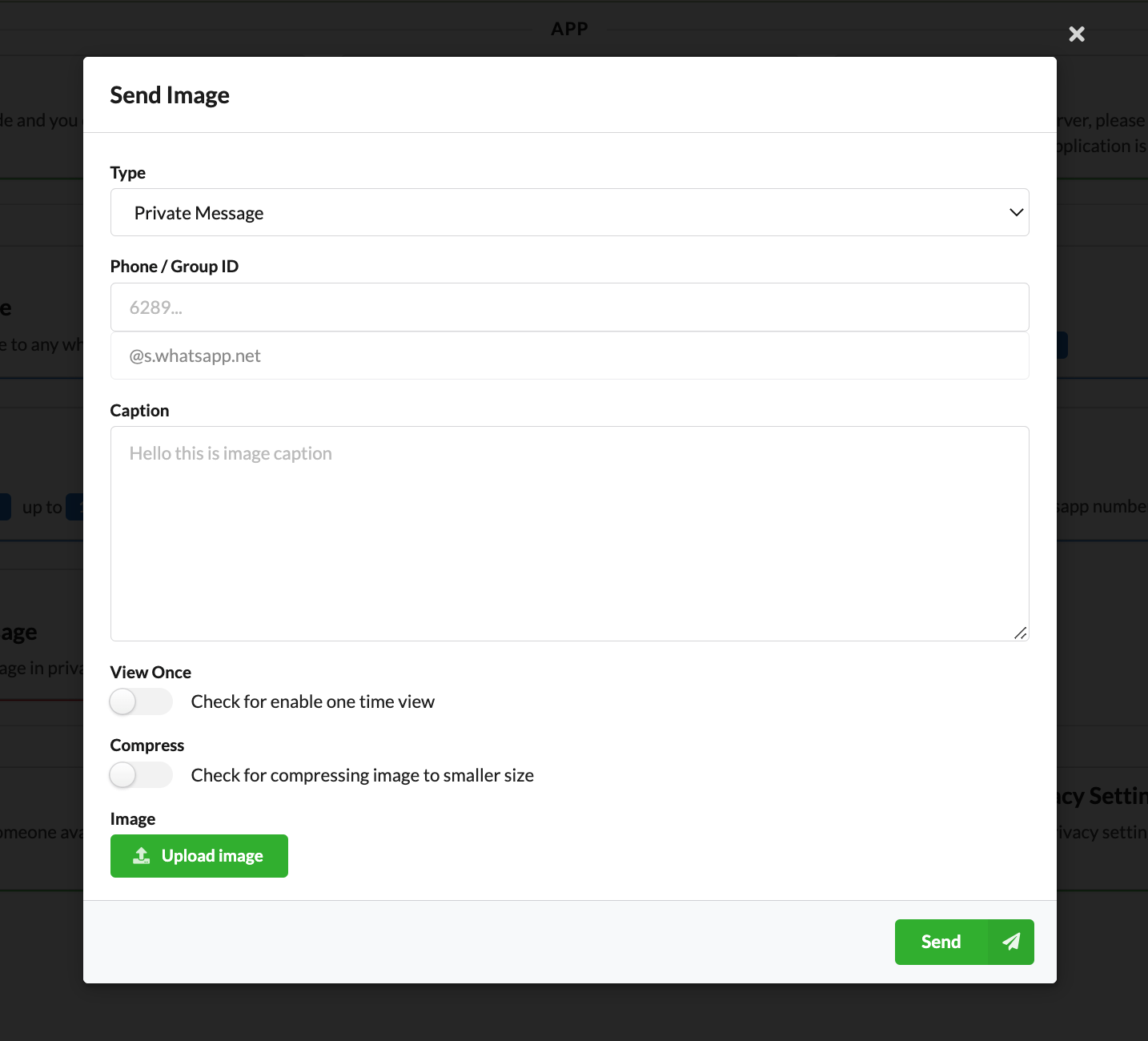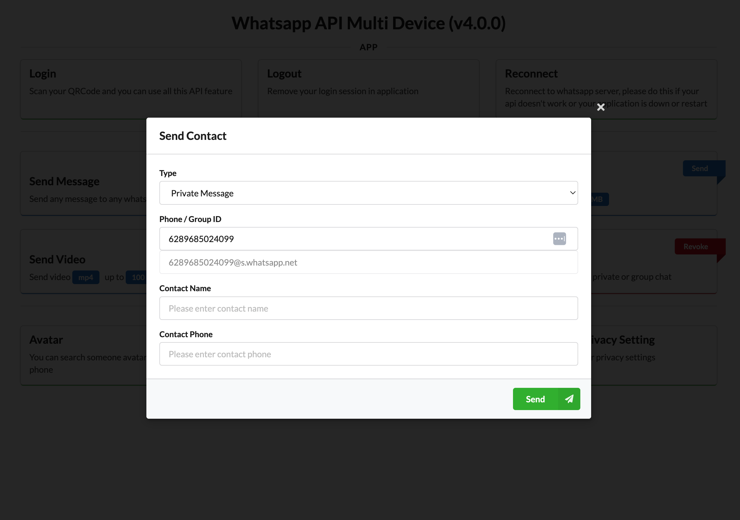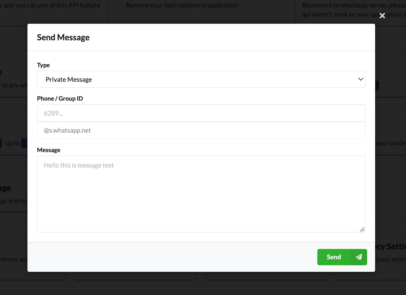 - Send whatsapp via http API, docs/openapi.yml for more details