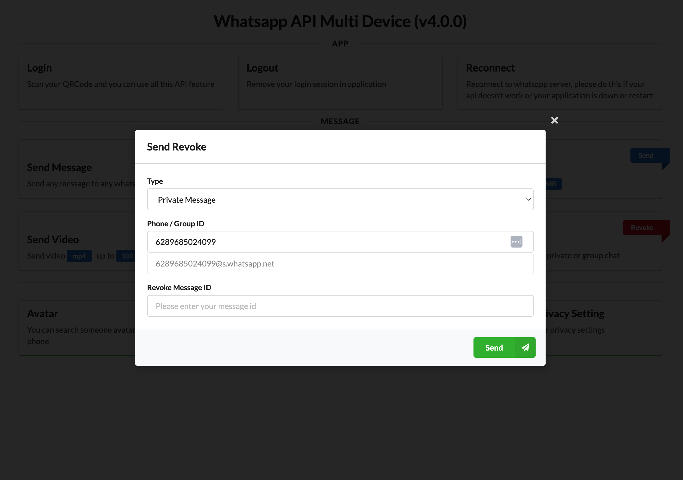 | ✅ | Revoke Message | POST | /message/:message_id/revoke |