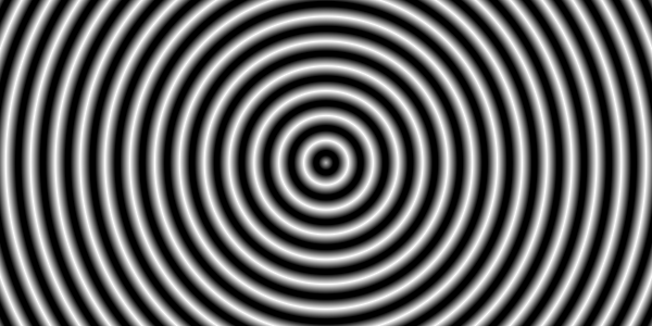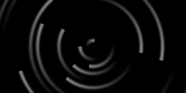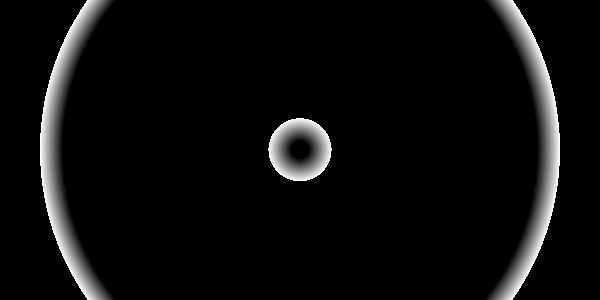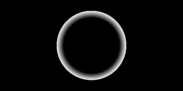 外円を 0.5、内円を 0.4 とし、その間を距離に応じて 白->黒 とグラデーションさせます。
