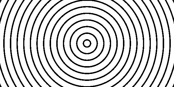 中心からの距離を mod() で区切ることで年輪模様ができます。