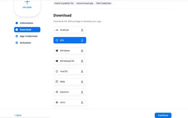 in first you need to login to your zoom account then select your project and download ios sdk.