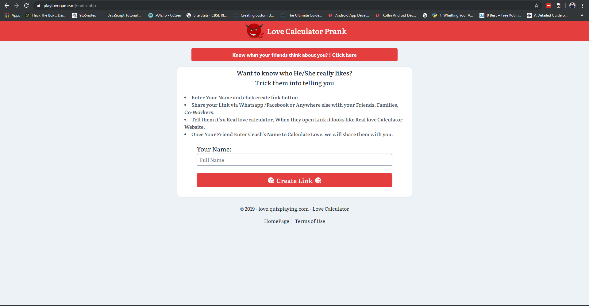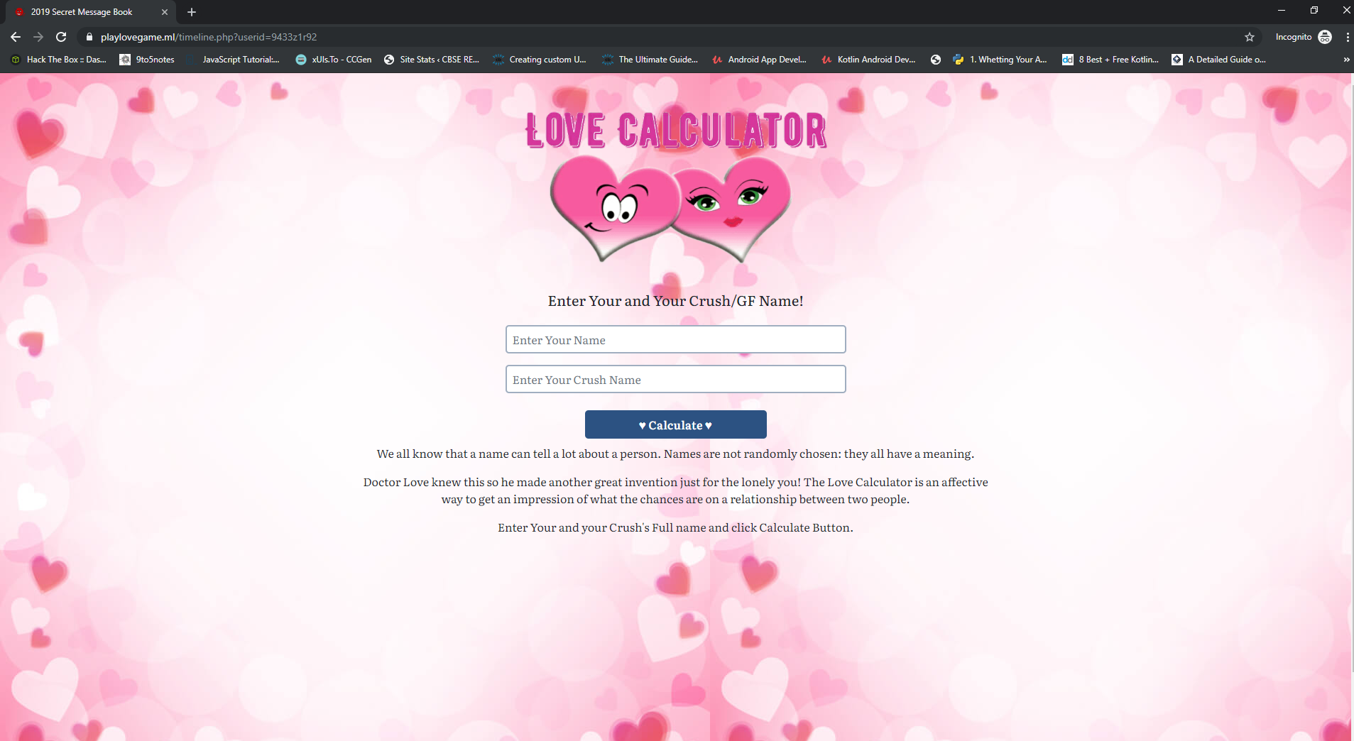 The Name Of The Project Is Love Calculator Prank It is Written in PHP by me. It is just a game don't take it seriously XD.