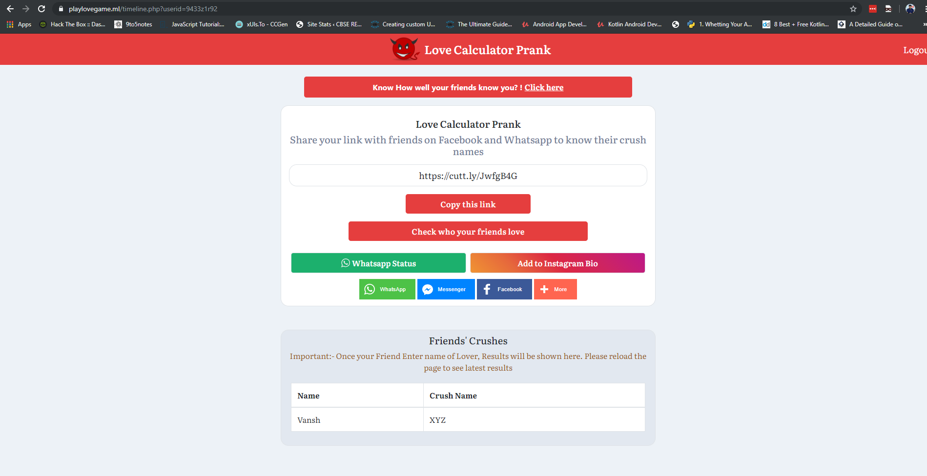 4-When User Share The Link & Victim Visits The Link Name Of Ther Person(WHo Created The Link) Will Be Reflected (Because Of Get Paramterer In User Id)In Unauthorized View Where Victim Can ENter His Crush Name & His Name