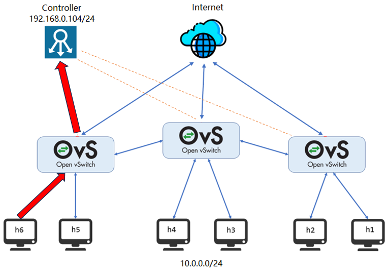 Scenario 4: In this scenario, we carried out an attack on the Controller from server h6.