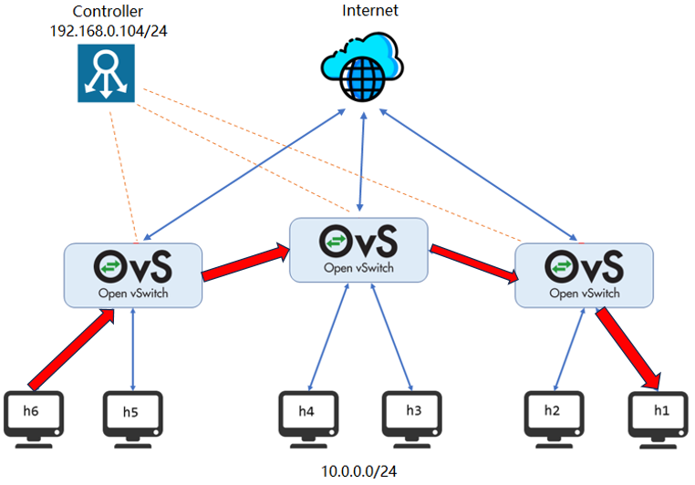 - Based on the policy of Flow, the task of prevention and drop of attack packets will be carried out by the OF Switch devices.
