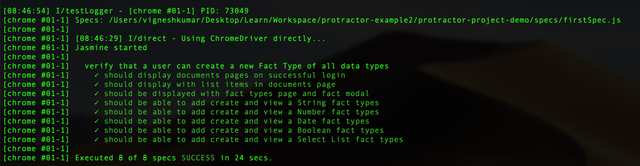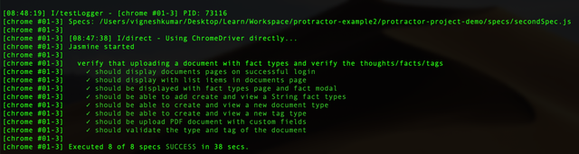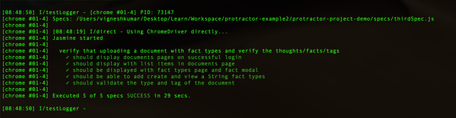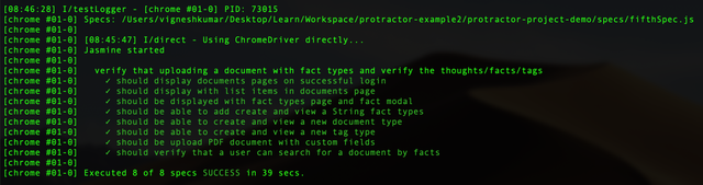 Protractor Exercise Example Protractor project that: Makes use of page objects Uses protractor-flake to re-run failed tests Setup: Install Node (v8.x.x or later) npm install to install the project dependencies Run tests: run tests via plain Protractor node_modules/.bin/protractor conf.js run tests npm test (runs via flake, which re-runs failed tests) run with flake ./flake conf.js Troubleshooting run node -v and make sure your node version is 8.x.x or greater webdriver-manager should have updated on install, but if not, run npm run update to be sure Test Results : First Test Suite : Second Test Suite : Third Test Suite : Fourth Test Suite : Fifth Test Suite :