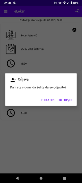 The eLekar mobile application allows you to schedule an appointment with the selected doctor, cancel them, as well as send a message to the doctor. It also has a built-in bot that can provide basic information about the infectious disease COVID-19. To log in to the application, you need to enter your LBO and BZK and then log in via email or phone number.