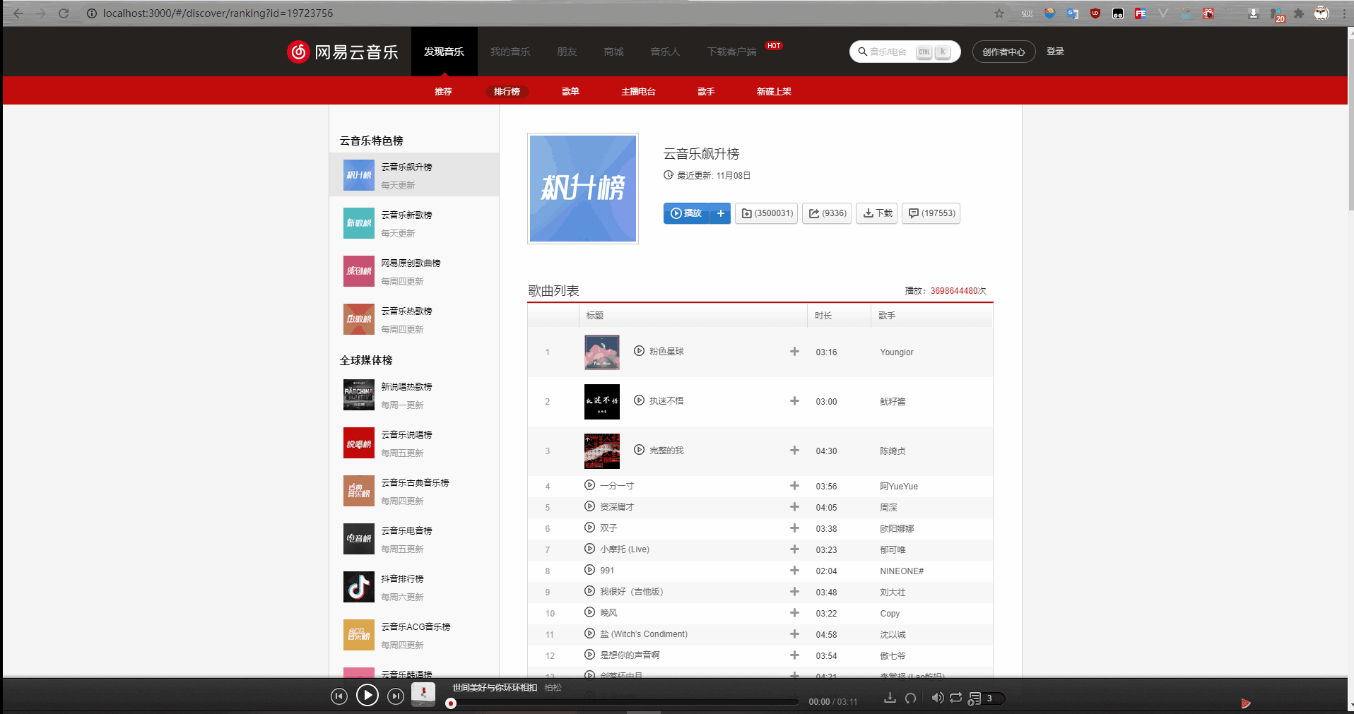 - (刷新浏览器,歌曲列表依然存在)