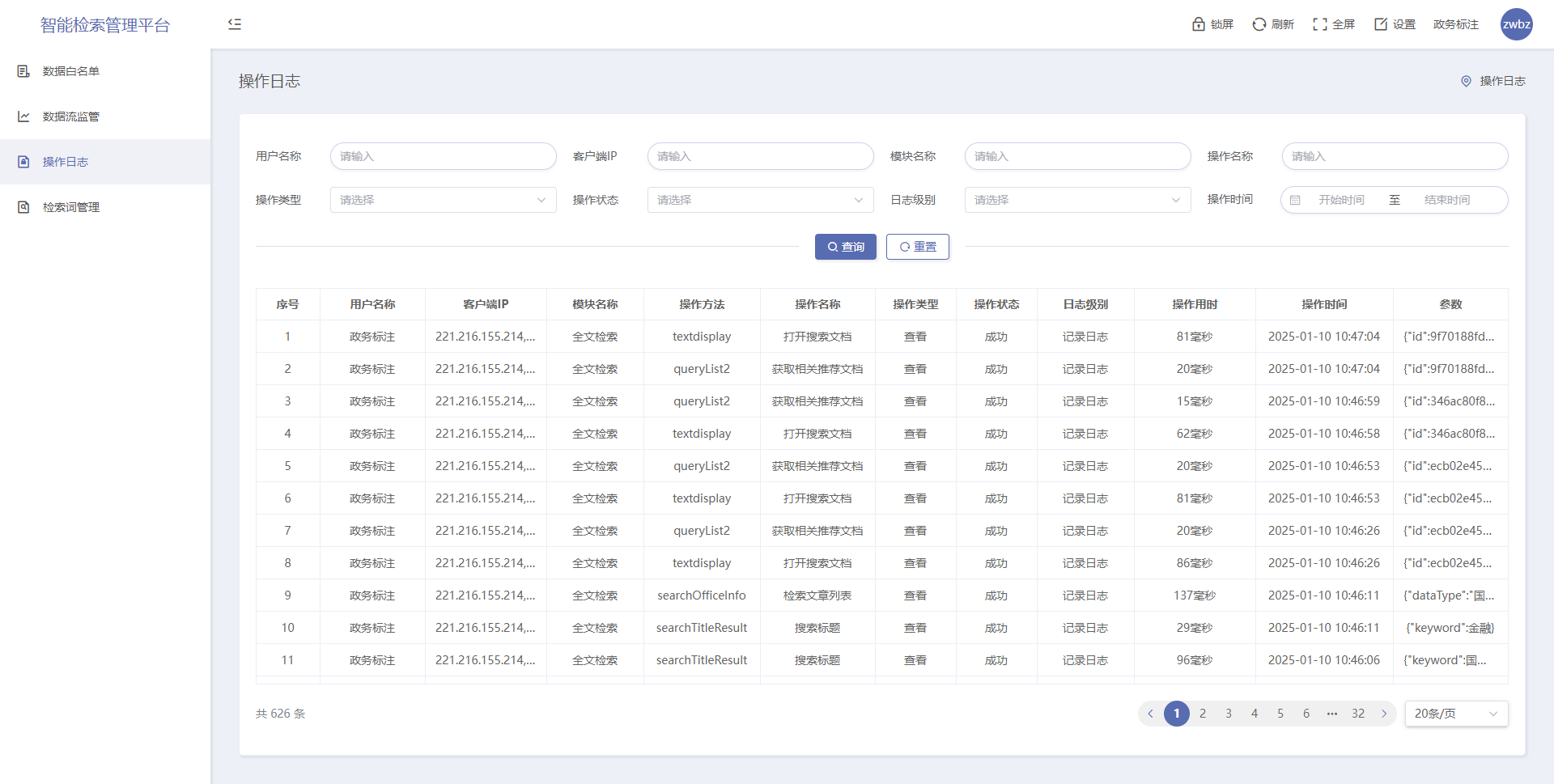 针对所有可查数据、数据流入项、用户检索词、用户检索日志均可以进行记录、查看和管理,有效管控敏感文件权限。
